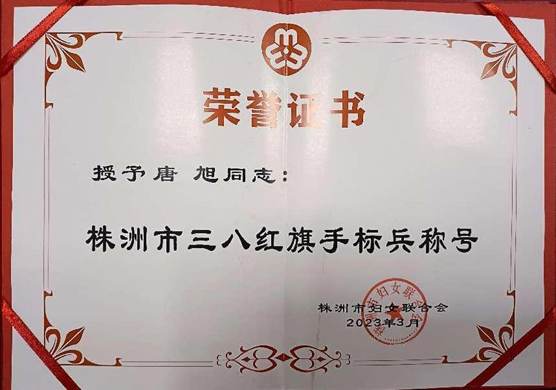 喜報(bào)——唐旭榮獲株洲市“三八紅旗手標(biāo)兵”光榮稱號(hào)