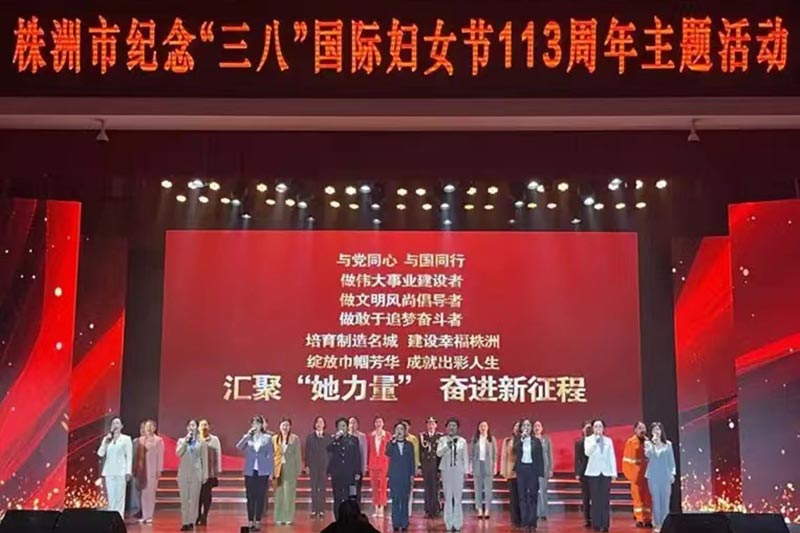 3月8日,株洲市紀(jì)念"三八"國際婦女節(jié)113周年主題活動(dòng)在市委禮堂舉行;顒(dòng)中,市委書記曹慧泉等市領(lǐng)導(dǎo)向全國三八紅旗手、全國巾幗建功標(biāo)兵、全國巾幗文明崗、全國巾幗建功先進(jìn)集體代表,株洲市三八紅旗手標(biāo)兵、三八紅旗手、三八紅旗集體代表,株洲市巾幗文明崗、巾幗建功標(biāo)兵、巾幗建功先進(jìn)集體代表等頒發(fā)了榮譽(yù)證書和獎(jiǎng)牌。公交公司結(jié)算中心信息管理部唐旭被授予"三八紅旗手標(biāo)兵"稱號(hào),并代表株洲16萬女性同胞宣誓。