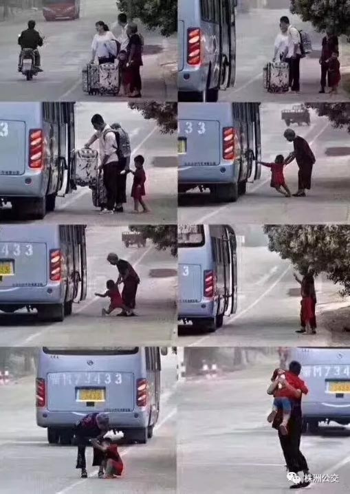 用盡全身力氣扒住車門,想留住媽媽