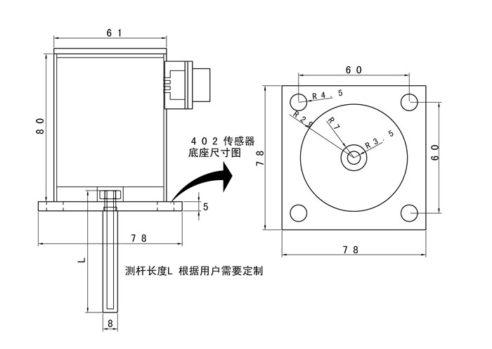 -插入深度L:42mm~56mm范圍內(nèi)可伸縮。