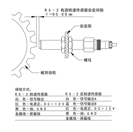 RS-2F為雙路測速傳感器,配以鍵槽或齒輪能輸出兩路有相位差地幅度穩(wěn)定的信號,既具有普通的測速功能,又具有判向功能,能分辨齒輪、齒條的運動方向。
